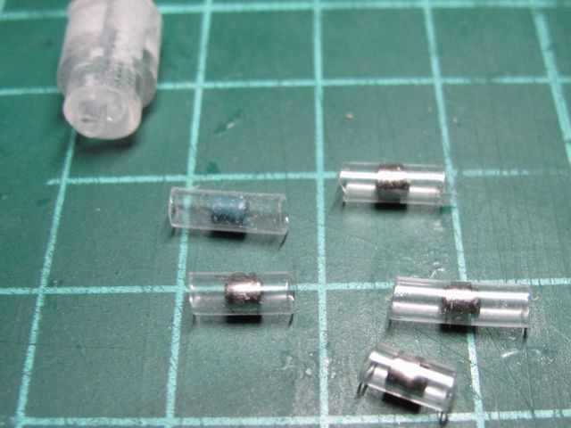 レジンをこぼしたりしてえらい事になっていますが、問題はそこではなく、LEDの部分が”茶色く変色(ヤケ?)”している事なんですね・・・。